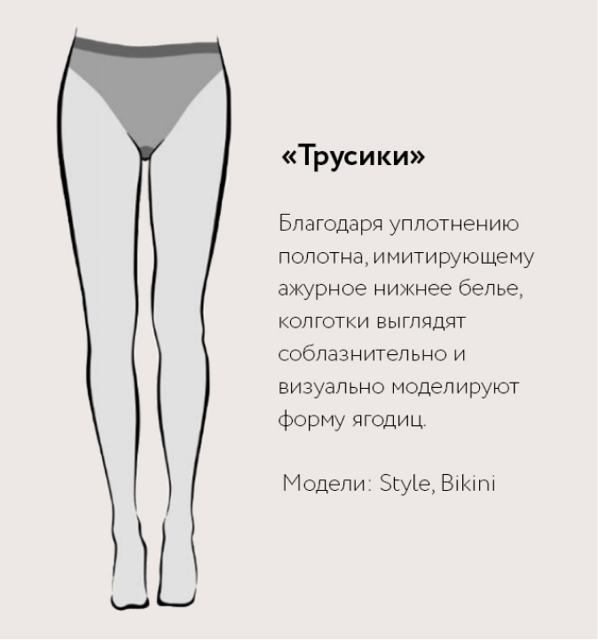 Колготки с LYCRA® гарантируют превосходную посадку по фигуре в течение долгого периода времени и дарит комфорт и легкости движения. Осталось только выбрать удобную для вас конструкцию пояса.